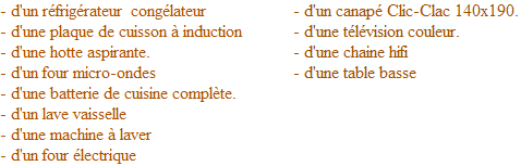 - d'un lit 140x190 avec sommiers à lattes, oreillers, couettes, protège matelas,